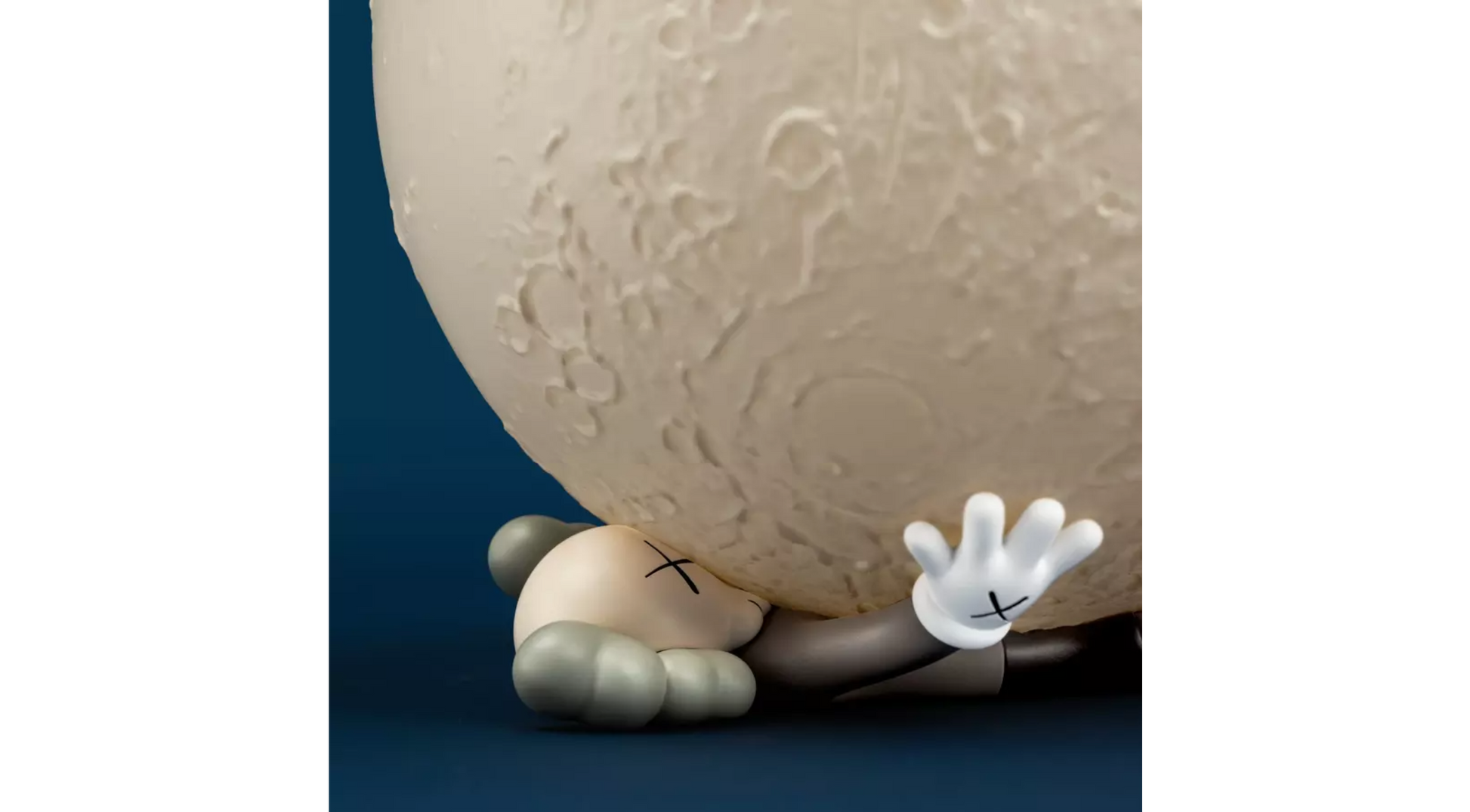Part of the globally recognized KAWS Holiday series, this edition takes fans on a lunar journey — capturing the quiet serenity of floating in the cosmos. Crafted in high-quality vinyl, the sculpted moon features intricate textures, while Companion rests in a tranquil, reclining pose.